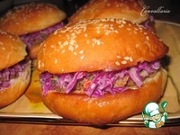 Описание: Необыкновенно вкусный и сытный сэндвич из свежей, мягкой булочки с обжаренным мясом и острым капустным салатом в оригинальном соусе.