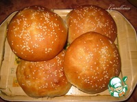 Булочки разрезать вдоль и обжарить с внутренней стороны до румяной корочки на сухой сковороде. На нижнюю часть булочки равномерно положить кусочки обжаренного мяса. |