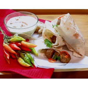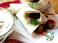 Начиняем кулёчки из лаваша шариками и подаём с соусом. |
