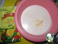 Перемешайте яйца, маргарин, майонез, соль, соду, гашенную уксусом |