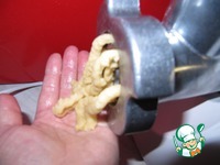 Пропустите тесто через мясорубку с выемкой для печенья, отрезая тесто через каждые 7-8 см, можете сделать круг |