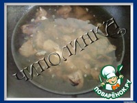 Залить кипяченой водой, так, что бы она покрыла мясо, посолить, поперчить и тушить около 30 минут. |