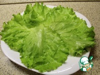 На блюдо выкладываю листья салата. |