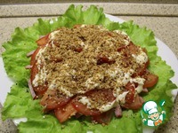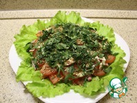 На салатные листья - ветчину, сверху соус и немного (столовую ложку) грецких орехов |