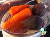 Для приготовления этого блюда свеклу необходимо сварить. Я это сделала в пароварке. (Морковь у меня сварена для другого блюда). Свеклу охладить. |