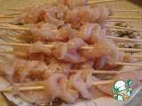 Разогреть сковороду, добавить масло, обжарить шашлычки часто поворачивая в течении 5 минут. |