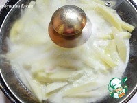 тушить под закрытой крышкой до полуготовности картофеля. |