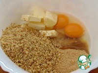 Для начинки:Орехи перебить в блендере, добавить масло порезанное кусочками, сахар марки Мистраль (100 г) и 2 яйца. Взбить до однородной консистенции. |
