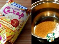 Для карамели:Уварить коричневый сахар (150 г) до состояния карамели. |