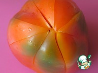 Затем этим же ножом с каждого листика очень аккуратно срезаем мякоть, не повредив кожицу, до конца надрезов. |