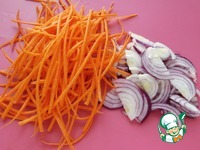 Морковь трём кому как вздумается, лук нарезаем соломкой и вместе с морковью обжариваем на растительном масле до мягкости. |