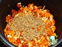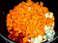 Затем добавить нарезанную брусочками морковь, нарезанный кабачок, нарезанную кубиками тыкву |