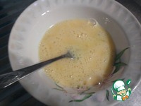 Тем временем немного взбейте яйца с щепоткой соли и перца. Насыпьте в отдельную тарелку муку. |