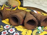 Ставим их в разогретую до 180 градусов духовку, примерно на 25-30 минут. Достаем из духовки, снимаем с металлических формочек. Вот такие трубочки получились у меня. |