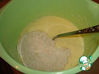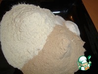 Добавляем сухую мучную смесь и замешиваем тесто. Муки может уйти немного больше, в зависимости от муки. Если муки будет маловато, добавьте пшеничной муки когда будете вымешивать тесто. |