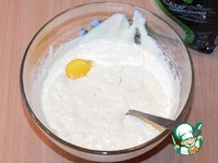 Насыпаем просеянную муку и разрыхлитель. Окончательно всё перемешиваем. Для совсем уж яркого вкуса можно добавить в тесто цедру или пару капель лимонного сока. |