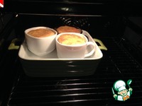Помещаем чашечки в водяную баню - емкость с горячей водой и ставим в предварительно разогретую до 180 градусов духовку. |