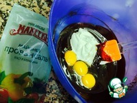 В остывший шоколад добавить 3 яйца и 3 ст. ложки майонеза"Махеевъ". Взбить миксером. |