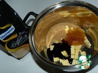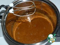 В массу, где у нас растворились масло, мёд, патока и сахар, ввести молочно-яичную смесь. |