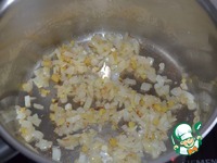 Лук и имбирь почисть. Порезать и обжарить на подсолнечном масле в кастрюле с толстым дном, не сильно! |