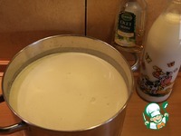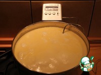 Сыворотку перемешать с молоком и довести до температуры 90*С. |