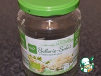Вскипятить воду. Пока вода кипит, натереть на корейской тёрке корневой сельдерей. Вода вскипела, добавить винный уксус 6 ст. л., можно и обыкновенный, только 3 ст. л. и селдерей! Плиту выключить, но с плиты кастрюльку не убирать и дать немного настояться (примерно 10 мин).