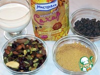 Ингредиенты для щербета - сахар коричневый "Мистраль", сливки 10%, смесь Fitness - орехи, изюм, тыквенные семена, клюква. |