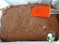 У нас получится вот такой крем. Вторую половину сах. пудры и 70г. масла смешать с оставшимся порошком какао. Это будет шоколадный крем. |
