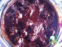 Затем в шоколадно-масляную массу добавить измельчённые в мельнице (блендере) каштаны (или орехи) и вишню, всё перемешать и снять с паровой бани. |