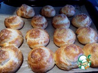Булочки выложить на противень, смазанный маслом или выстланный бумагой для выпечки. По желанию булочки можно смазать яичным желтком и присыпать сахаром. |