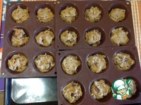 Приготовленным тестом заполняем до половины небольшие формочки смазанные маслом, (у меня силикон я не смазывала). |