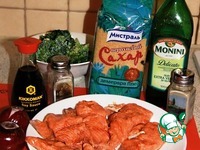 Коричневый сахар смешать с соевым соусом KIKKOMAN. Отложить. |