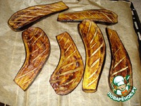 Берём баклажаны, режем их вдоль и в каждой половинке сделаем надрезы ножиком. |