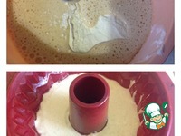 Добавить муку и разрыхлитель, немного взбить. Половину теста вылить в форму |