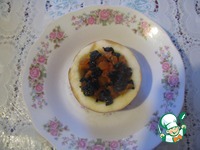 На дно яблока щепотку сахара, далее сухофрукты. |