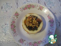 Затем орехи, полить ложкой мёда (густой растопить), отправляем в духовку (10 мин) или в микроволновку (3 мин), образовавшимся сиропом поливаем яблоко. |