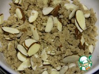 Готовим штрейзель. Для этого смешиваем 2 ст. л. муки, коричневый сахар и корицу. Добавляем масло и орехи и перемешиваем. Штрейзель должен быть сухим и мелким. |