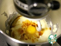 Добавляем амаретто, экстракт ванили и яйцо и продолжаем мешать миксером на средней скорости. |