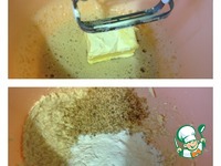 Добавить мягкое масло, взбить. Добавить разрыхлитель, муку и грецкие орехи, предварительно измельченные в блендере. Тщательно перемешать и замесить эластичное тесто. |
