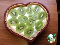 Сверху выложить кружочки киви, предварительно очищенные. Выпекать 40 мин при 180 гр |