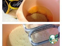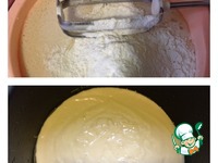 Далее разрыхлитель и мука, взбиваем. Чашу МВ смазываем маслом сливочным и выливаем тесто |