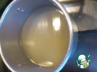 В это время приготовим сироп из воды и сахара. Просто на среднем огне доводим до кипения, помешивая, и кипятим минуты две, снимая пенку. |