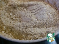 Вот готова мука ( я ее слегка передержала) ориентируйтесь, что цвет не должен быть настолько ЗОЛОТИСТЫМ. |