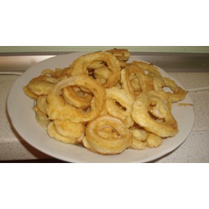 5. Разогреть масло в сковороде, аккуратно обжарить колечки с двух сторон до золотистого цвета.
