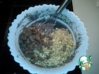 Добавляем орехи, поломанные кусочки шоколада и снова все перемешиваем. |