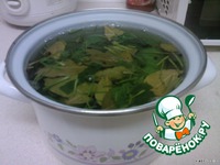 В воду добавляем мелко порезаный укроп (я обычно использую "ножки"), перец горошком, лавровый лист, базилик, соль - доводим до кипения. |