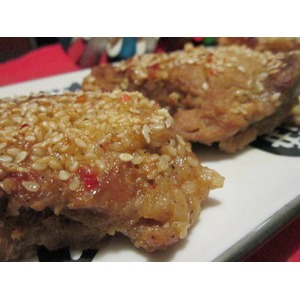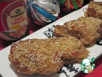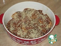 Обильно посыпаем кунжутным семенем. Отправляем в разогретую до 220 градусов духовку на 30-40 минут. Это зависит от вашей духовки и любимой степени прожаренности )) |