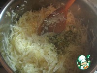 Готовую капусту отставить с огня и дать остыть. На этом этапе я добавила к капусте смесь трав для овощей. |