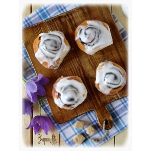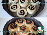 Выложить заготовки на противень или в форму, застеленную пекарской бумагой смазанной маслом. Дать плюшкам подняться в течение 30 минут. Выпекать в заранее разогретой духовке при 180°С 20-25 минут. |