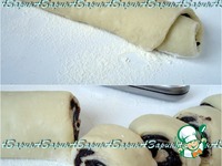 Скатать пласт в рулет. Рулет разрезать на 12 частей, примерно по 3 см шириной. |